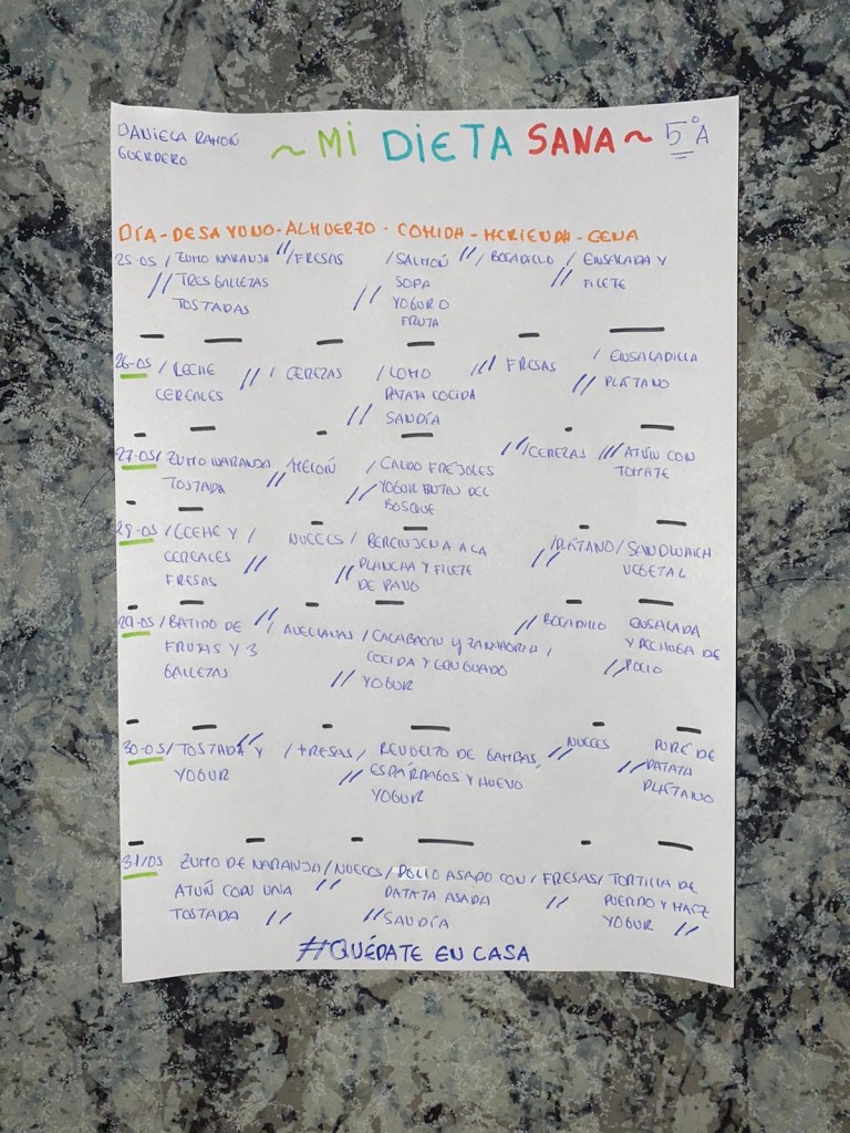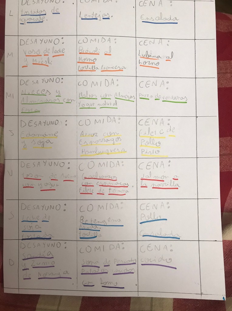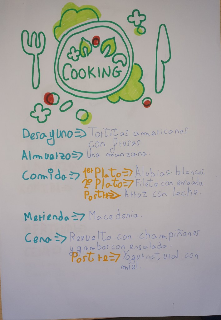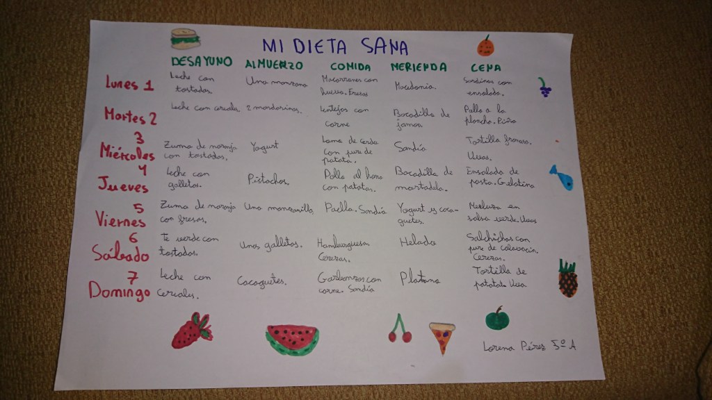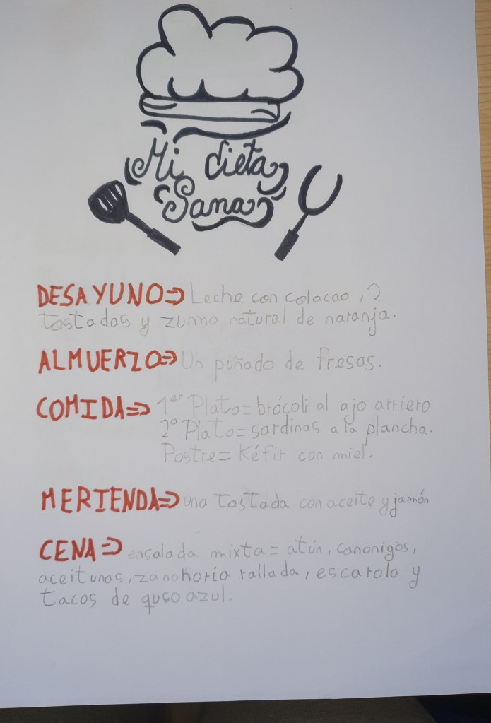 Como tarea extra, los alumnos se han convertido en Chefs con estrella Michelin y han creado sus propias dietas sanas semanales. Aquí os dejo algunos ejemplos: