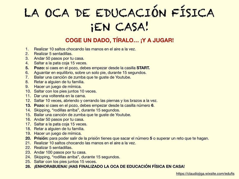 Os dejo un gran juego aplicado a la Educación Física, el juego de la oca, pero en movimiento.